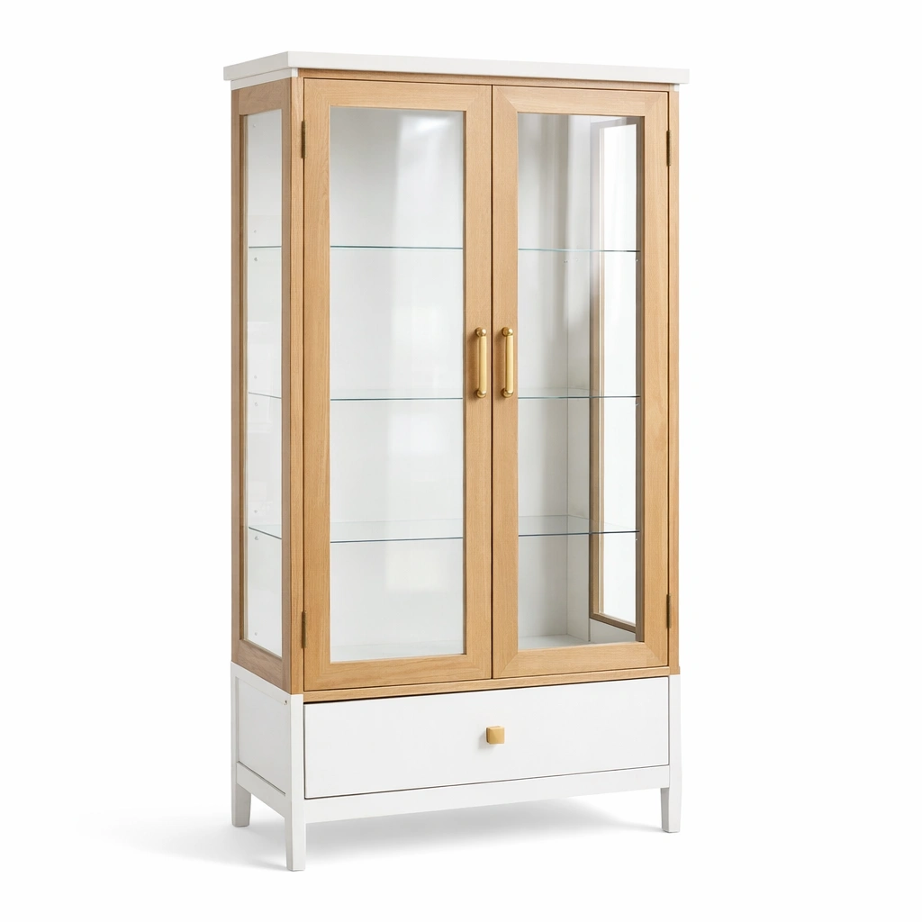 Vitrina de madera y vidrio templado marrón claro blanco 180x90x40 cm